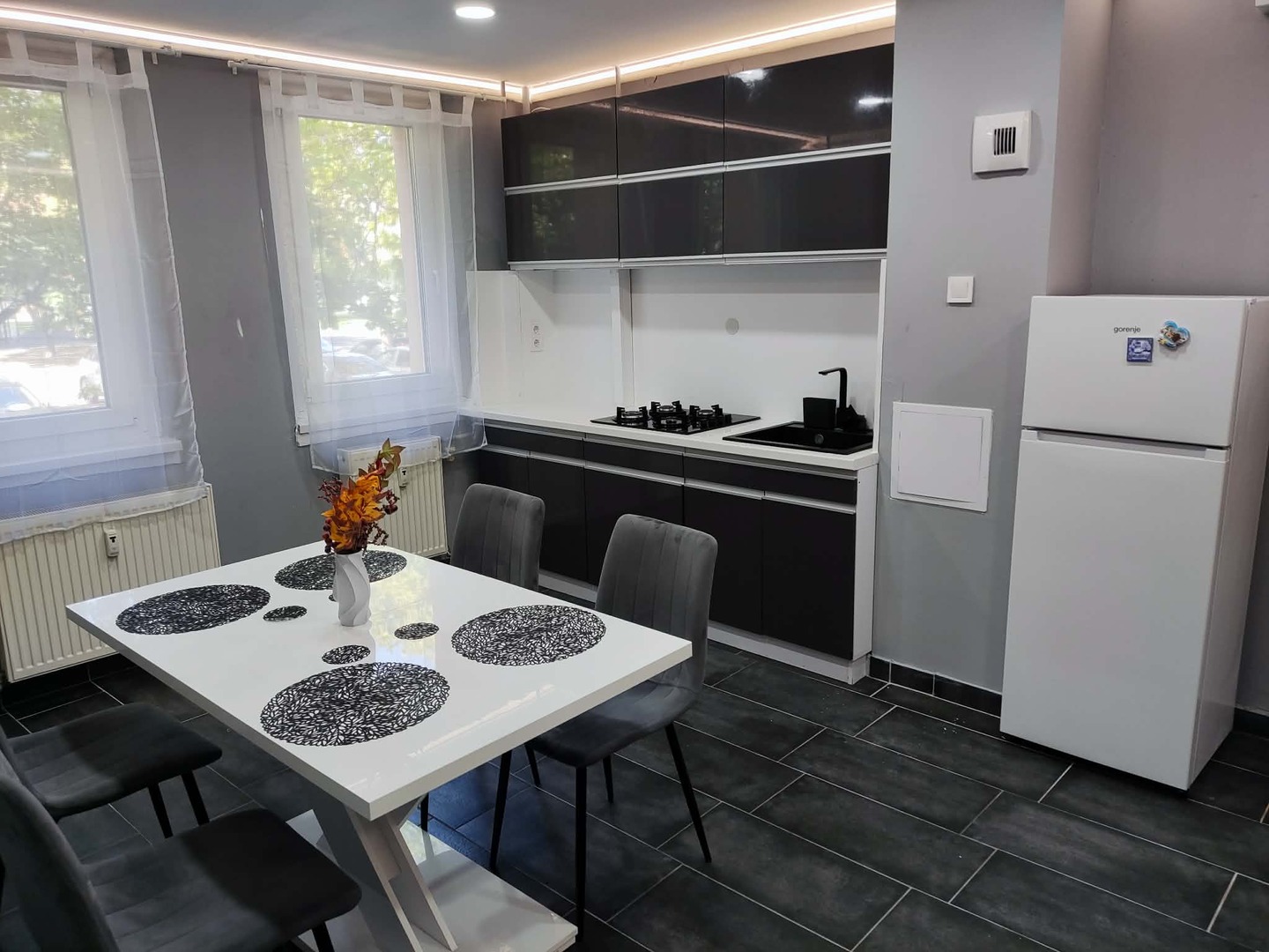 A fürdőszoba, konyha és az elektromos hálózat is teljes korszerűsítésen esett át.
